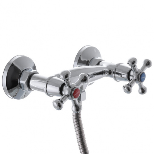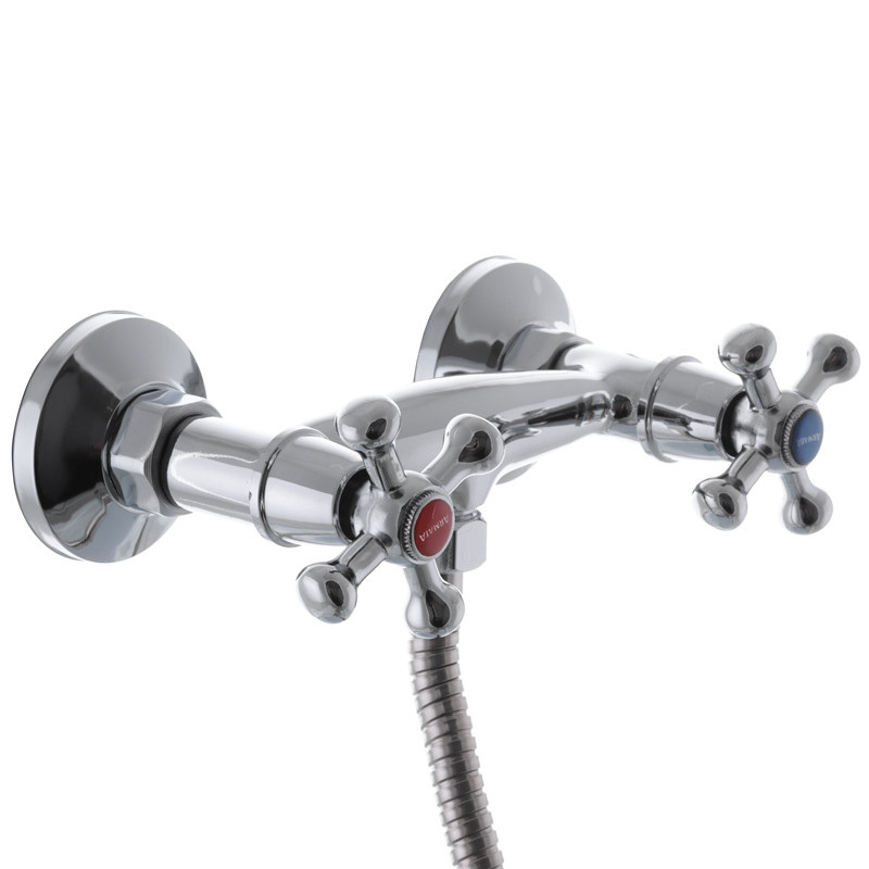 Двоважільний змішувач для душу Armata 003 (AR0002) має замінний запірний елемент - напівоборотну керамічну кран буксу розміром 1/2. Встановлюється на труби холодної та гарячої води, вмонтовані у стіну. Закріплюється за допомогою ексцентриків, які йдуть у комплекті разом із гумовими прокладками, декоративними чашками, шлангом, лійкою та кронштейном.