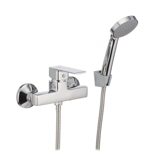 Змішувач одноважільний для душу Cron Kubus 003 (CR0808) має замінний запірний елемент - картридж з керамічними пластинами діаметром 35 мм. Встановлюється на труби холодної та гарячої води, вмонтовані у стіну. Закріплюється за допомогою ексцентриків, які йдуть у комплекті разом з гумовими прокладками, декоративними чашками, шлангом, лійкою та кронштейном.