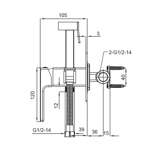 Детальні характеристики Змішувач для гігієнічного душу Koer KB-23009-05 (Колір чорний) (KR3511).