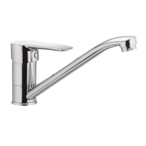Одноручковий змішувач для кухні CRON COLUMBIA 004 (CR0207) монтується під один отвір (мийка, стільниця, підвіконня) на шпильку. Матеріал корпусу – стійкий до корозії силумін (сплав алюмінію з кремнієм). Покриття - дзеркальний хром. Довжина поворотного виливу - 22 см. Запірний елемент - керамічний картридж діаметром 35 мм. Підключається до трубопроводу двома гнучкими підводками, які йдуть у комплекті разом із кріпильним елементом та гумовими прокладками. Поставляється у фірмовій коробці Cron.