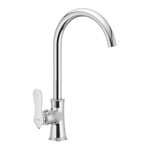 Одноручковий змішувач для кухні CRON DIAMOND 017 (CR0814) монтується під один отвір (миття, стільниця, підвіконня) на гайку. Матеріал корпусу – стійкий до корозії силумін (сплав алюмінію з кремнієм). Покриття - дзеркальний хром. Довжина поворотного виливу - 19 см. Запірний елемент - керамічний картридж діаметром 35 мм. Підключається до трубопроводу двома гнучкими підводками, які йдуть у комплекті разом із кріпильним елементом та гумовими прокладками. Поставляється у фірмовій коробці Cron.