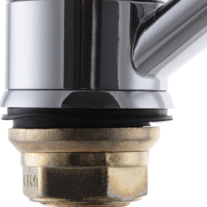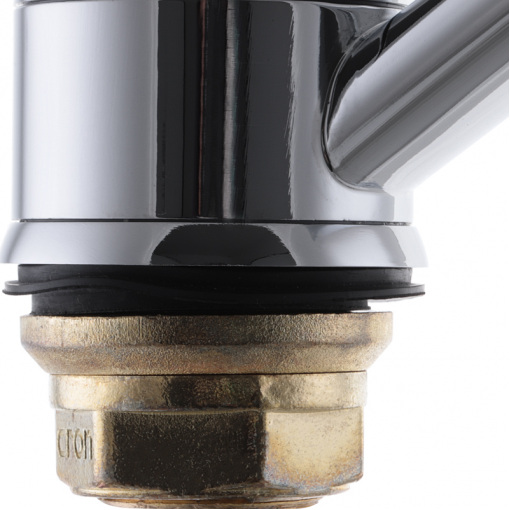 Одноручковий змішувач для кухні CRON MAGIC 555 (червона ручка) (CR0110) монтується під один отвір (мийка, стільниця, підвіконня) на гайку. Матеріал корпусу – стійкий до корозії силумін (сплав алюмінію з кремнієм). Покриття – хром, що захищає від корозії.