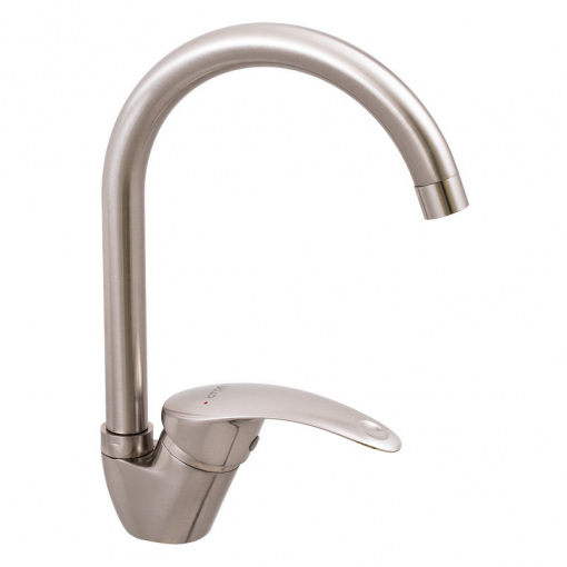 Одноручковий змішувач для кухні CRON MARS 777-G (CR0784) монтується під один отвір (мийка, стільниця, підвіконня) на гайку. Матеріал корпусу – стійкий до корозії силумін (сплав алюмінію з кремнієм). Колір покриття - нержавіюча сталь. Довжина поворотного виливу - 18 см. Запірний елемент - керамічний картридж діаметром 40 мм. Підключається до трубопроводу двома гнучкими підводками, які йдуть у комплекті разом із кріпильним елементом та гумовими прокладками. Поставляється у фірмовій коробці Cron.