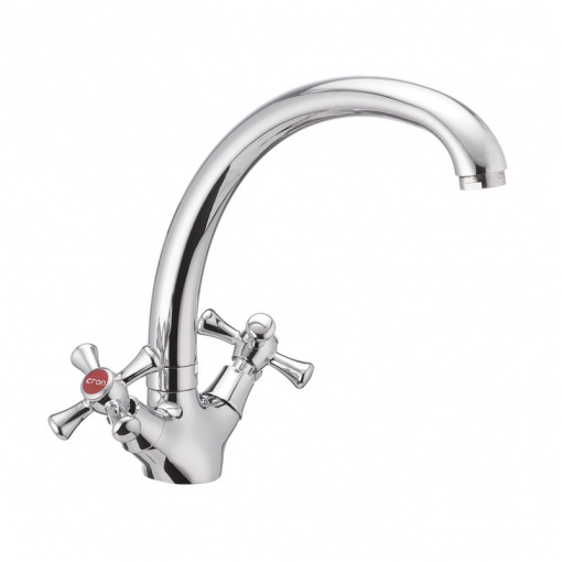 Дворучковий змішувач для кухні CRON SMES 273 (CR0069) , підвіконня) на гайку. Матеріал корпусу – стійкий до корозії силумін (сплав алюмінію з кремнієм). Покриття - дзеркальний хром.