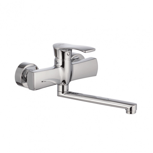 Одноручковий змішувач для кухні CRON SONATA 005 (CR0815) монтується на стіну за допомогою ексцентриків, які йдуть в комплекті, разом з гумовими прокладками та декоративними чашками. Матеріал корпусу – стійкий до корозії силумін (сплав алюмінію з кремнієм). Покриття - дзеркальний хром. Довжина поворотного виливу - 20 см. Запірний елемент - керамічний картридж діаметром 35 мм. Поставляється у фірмовій коробці Cron.