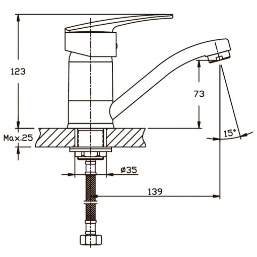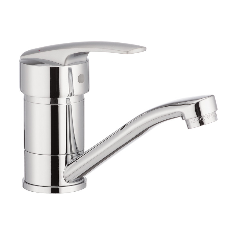 Одноручковий змішувач для кухні Haiba AGAT 555 (вилив 15 см) (HB0010) монтується під один отвір (мийка, стільниця, підвіконня) на гайку. Виготовлений з латуні (сплаву цинку, міді та ін. металів), що володіє високою міцністю, зносостійкістю і є одним з кращих матеріалів для змішувачів. Покриття - хром, що захищає від корозії. Вилив поворотний довжиною 15 см. Запірний елемент - керамічний картридж 40 мм, виробництва компанії Sedal, який у разі чого можна замінити. Підключається до трубопроводу двома гнучкими підводками, які йдуть у комплекті разом із кріпильним елементом, аератором та гумовими прокладками. Поставляється у фірмовій коробці Haiba.