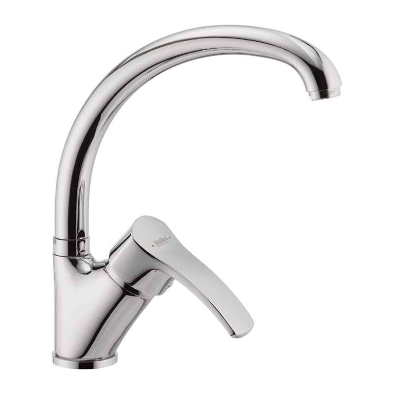 Одноручковий змішувач для кухні Haiba FOCUS 777 (HB0138) монтується під один отвір (мийка, стільниця, підвіконня) на гайку. Виготовлений з латуні (сплаву цинку, міді та ін. металів), що володіє високою міцністю, зносостійкістю і є одним з кращих матеріалів для змішувачів. Покриття – хром, що захищає від корозії. Колір сталевий.