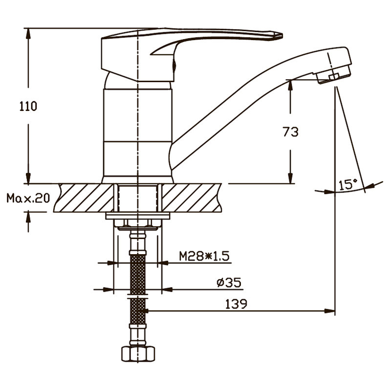 Змішувач для кухні Haiba GERMES 555 вилив 15 см (HB0143)