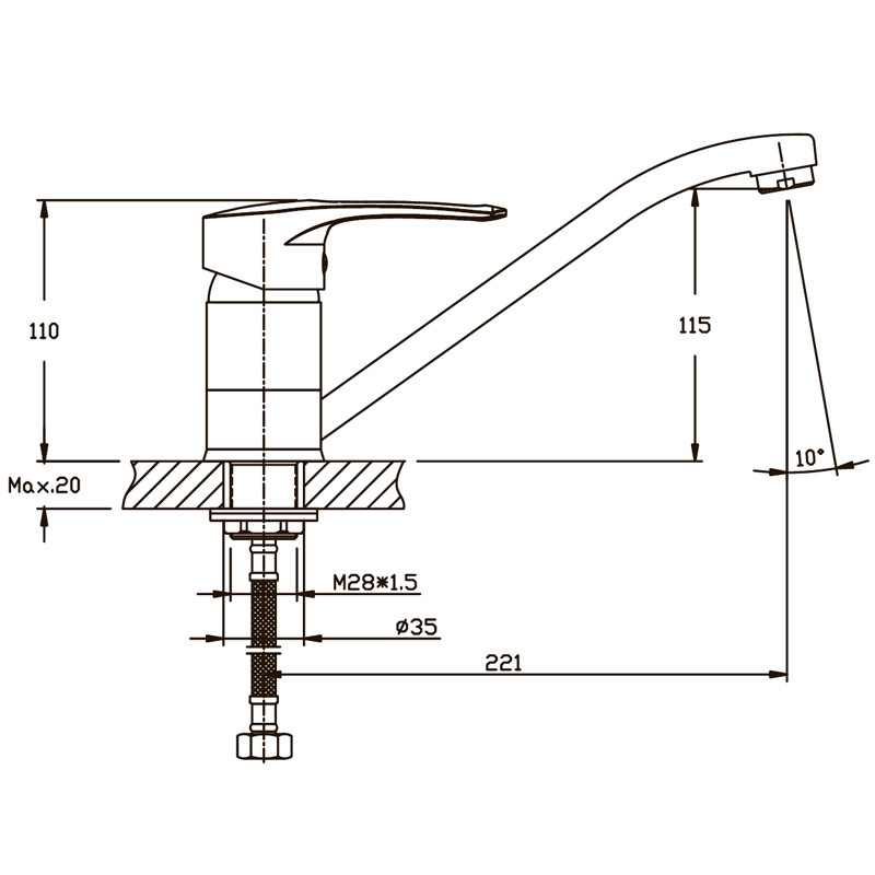 Детальні характеристики Змішувач для кухні Haiba GERMES 555 (HB0142).