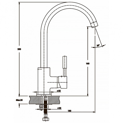 Детальні характеристики Змішувач для кухні Haiba HANS 011 (HB0168).