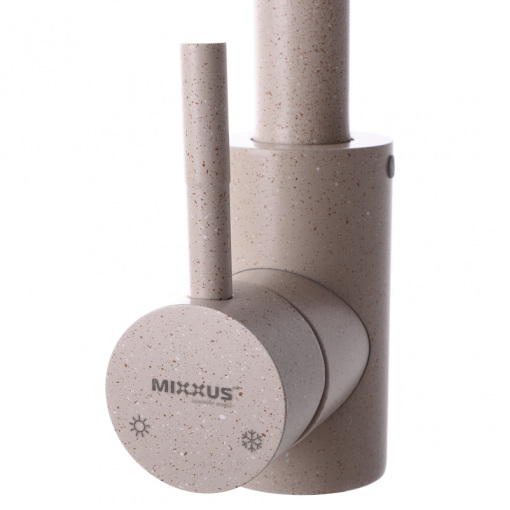 Одноручковий змішувач для кухні MIXXUS SUS-011 бежевий (SS2791) монтується під один отвір: мийка, стільниця, підвіконня. Матеріал корпусу - нержавіюча сталь SUS 304 відрізняється низьким вмістом у складі вуглецю та відсутністю свинцю. Вона стійка до корозії та впливу хімічних речовин. Покриття – бежева фарба з білою крихтою. Завдяки зовнішній обробці дана модель виглядає як гранітний змішувач.