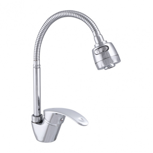 Одноручковий змішувач для кухні ZERIX YUB 135 з рефлективним виливом (ZX2948) монтується під один отвір (миття, стільниця, підвіконня) на гайку. Матеріал корпусу – стійкий до корозії силумін (сплав алюмінію з кремнієм). Покриття - дзеркальний хром. На гнучкому рефлекторному виливі дворежимний аератор з перемиканням кнопкою на струмінь і душ. Запірний елемент – керамічний картридж 40 мм. Підключається до трубопроводу двома гнучкими підводками, які йдуть у комплекті разом із кріпильним елементом, аератором та гумовими прокладками. Поставляється у фірмовій коробці Zerix.