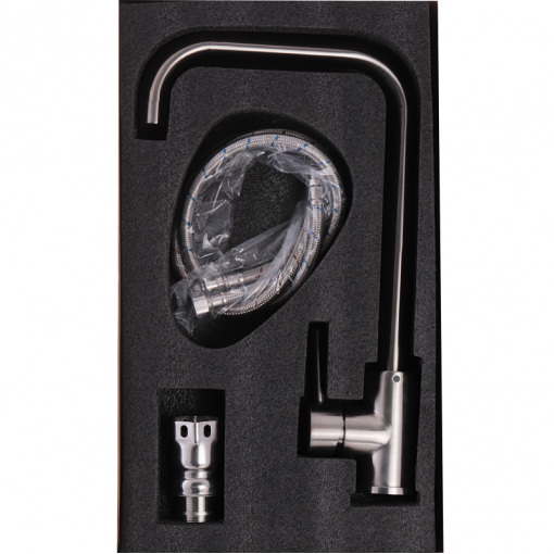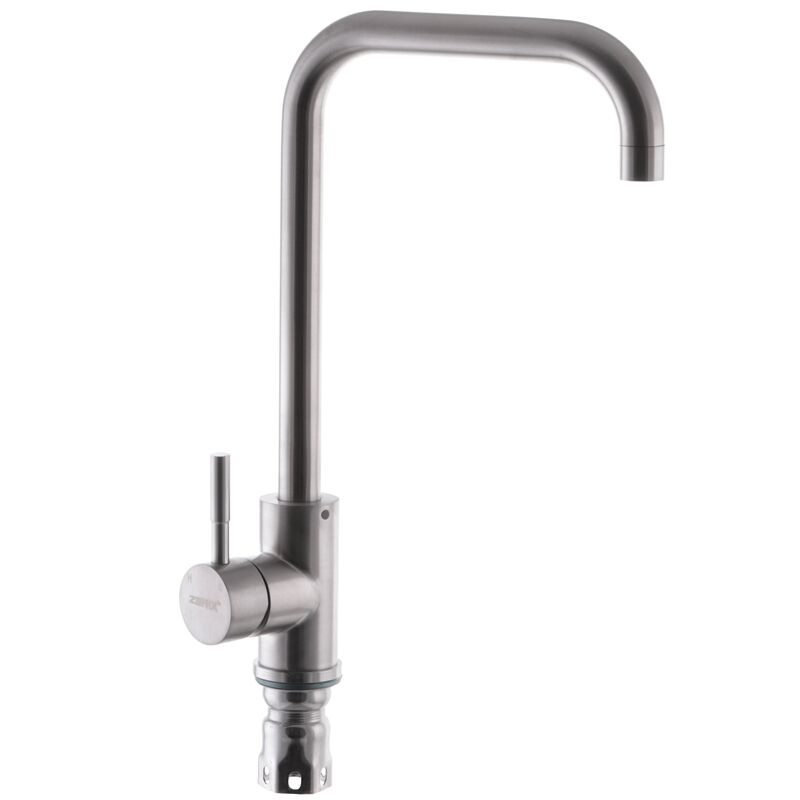 Одноручковий змішувач для кухні ZERIX ZS-8106 (ZX2689) монтується під один отвір: мийка, стільниця, підвіконня. Матеріал корпусу - нержавіюча сталь SUS 304 відрізняється низьким вмістом у складі вуглецю та відсутністю свинцю. Вона стійка до корозії та впливу хімічних речовин. Вилив поворотний. Запірний елемент – керамічний картридж. Підключається до трубопроводу двома гнучкими підводками, які йдуть у комплекті разом із кріпильним елементом, аератором та гумовими прокладками. Поставляється у фірмовій коробці Zerix. На корпус змішувача для кухонного миття ZERIX ZS-8106 надається гарантія - 5 років, а на комплектуючі - 1 рік.