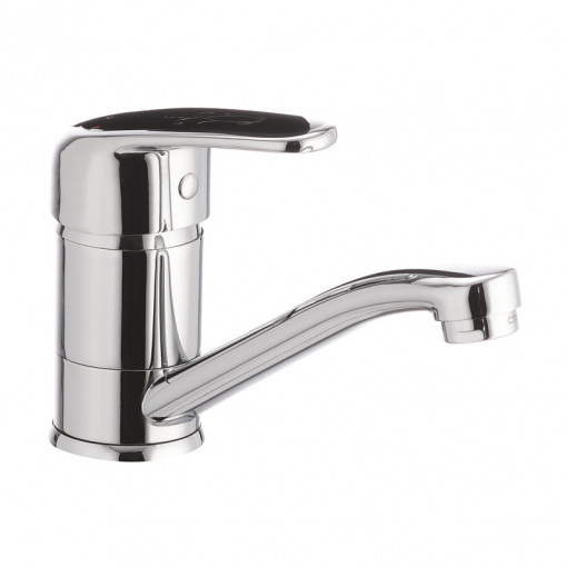 Одноручковий змішувач для умивальника CRON MAGIC 555 (вилив 15 см) (чорна ручка) (CR0131) монтується гайкою на один отвір. Матеріал корпусу – стійкий до корозії силумін (сплав алюмінію з кремнієм). Покриття - дзеркальний хром. Декоративна чорна ручка, характерна колекції Magic, виділяє цей варіант із достатку класичних моделей. Запірний елемент - керамічний картридж 40 мм. Підключається до трубопроводу двома гнучкими підводками, які йдуть у комплекті разом із кріпильним елементом, аератором та гумовими прокладками. Поставляється у фірмовій коробці Cron.