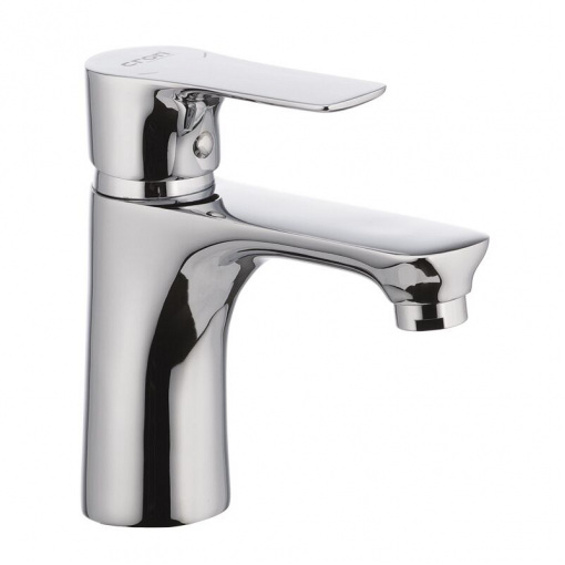 Одноручковий змішувач для умивальника CRON SMART 001 (CR0165) монтується гайкою на один отвір. Матеріал корпусу – стійкий до корозії силумін (сплав алюмінію з кремнієм). Покриття - дзеркальний хром. Довжина виливу 140 мм. Запірний елемент - керамічний картридж, що замінюється, 40 мм. Підключається до трубопроводу двома гнучкими підводками, які йдуть в комплекті разом з елементом кріплення, аератором і гумовими прокладками. Поставляється у фірмовій коробці Cron.