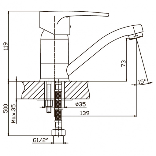 Одноручковий змішувач для умивальника Haiba CEBA 004 (вилив 15 см) (HB0029) монтується шпилькою на умивальник на один отвір. Корпус виконаний з сантехнічної латуні категорії А, покритий хромом. Вилив поворотний довжиною 15 см. Запірний елемент - замінний керамічний картридж 40 мм. виробництва компанії Sedal. Висота змішувача – 119 мм. Підключається до трубопроводу двома гнучкими підводками, які йдуть в комплекті разом з елементом кріплення, аератором і гумовими прокладками. Поставляється у фірмовій коробці Haiba.