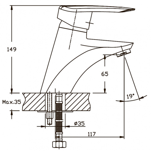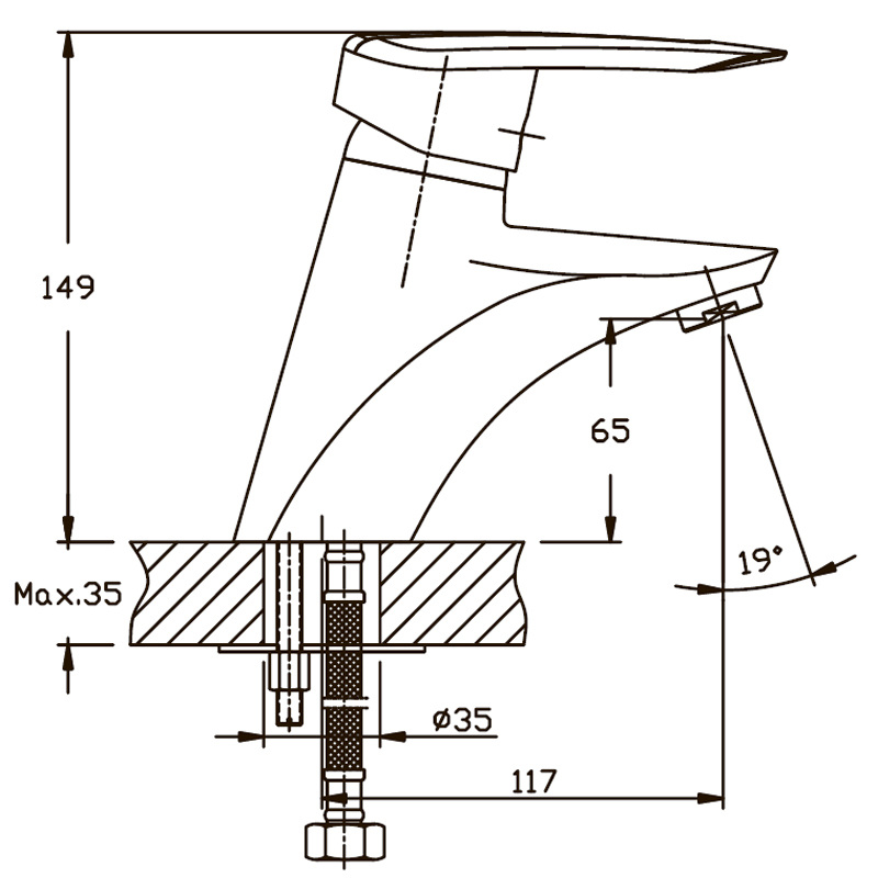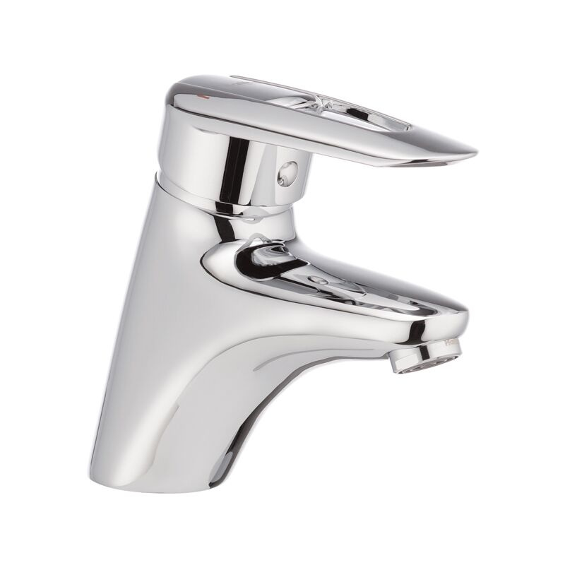 Одноручковий змішувач для умивальника Haiba DISK 001 (HB0050) монтується шпилькою на умивальник на один отвір. Корпус виконаний з сантехнічної латуні категорії А, покритий хромом. Вилив литої довжиною 117 мм. Запірний елемент - керамічний картридж 40 мм. виробництва компанії Sedal. Висота змішувача – 149 мм. Підключається до трубопроводу двома гнучкими підводками, які йдуть у комплекті разом із кріпильним елементом, аератором та гумовими прокладками. Поставляється у фірмовій коробці Haiba.