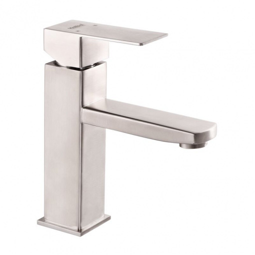 Одноручковий змішувач для умивальника HAIBA KUB 001 (HB3904) монтується гайкою на умивальник на один отвір. Корпус виконаний із стійкої до корозії нержавіючої сталі SUS 304. Вона відрізняється низьким вмістом у складі вуглецю та відсутністю свинцю. Вилив литий довжиною 125 мм. Запірний елемент - керамічний картридж, що замінюється 35 мм. виробництва компанії Sedal. Підключається до трубопроводу двома гнучкими підводками, які йдуть в комплекті разом з елементом кріплення, аератором і гумовими прокладками. Поставляється у фірмовій коробці Haiba.