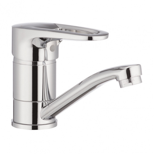 Одноручковий змішувач для кухні Haiba OPUS 555 (вилив 15 см) (HB0336) монтується під один отвір (мийка, стільниця, підвіконня) на гайку. Виготовлений з латуні (сплаву цинку, міді та ін. металів), що володіє високою міцністю, зносостійкістю і є одним з кращих матеріалів для змішувачів. Покриття – хром, що захищає від корозії. Колір сталевий. Вилив поворотний довжиною 15 см. Запірний елемент - керамічний картридж 40 мм виробництва компанії Sedal, який у разі чого можна замінити. Підключається до трубопроводу двома гнучкими підводками, які йдуть у комплекті разом із кріпильним елементом, аератором та гумовими прокладками. Поставляється у фірмовій коробці Haiba.