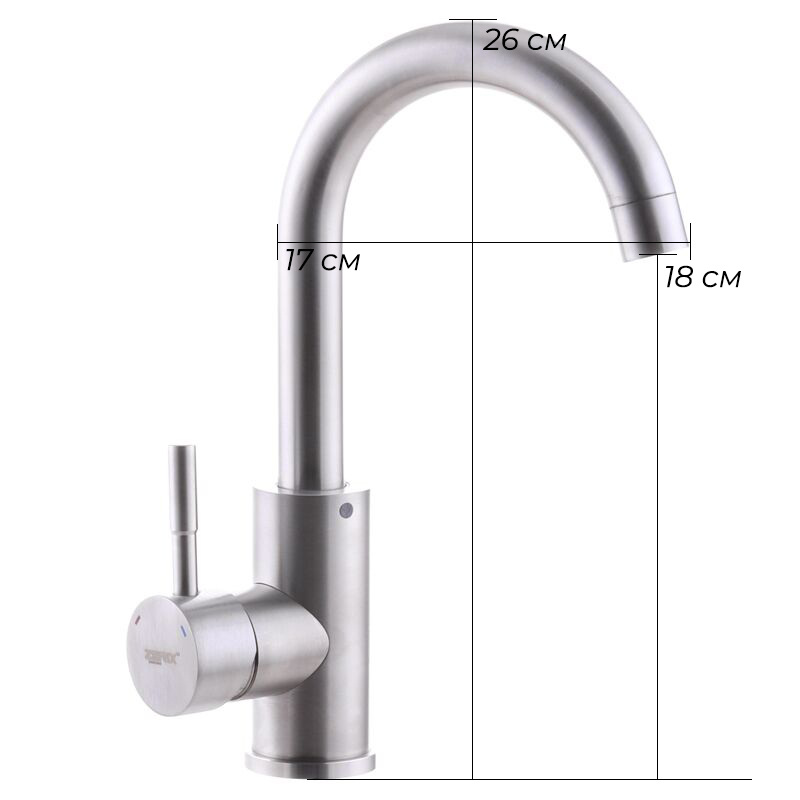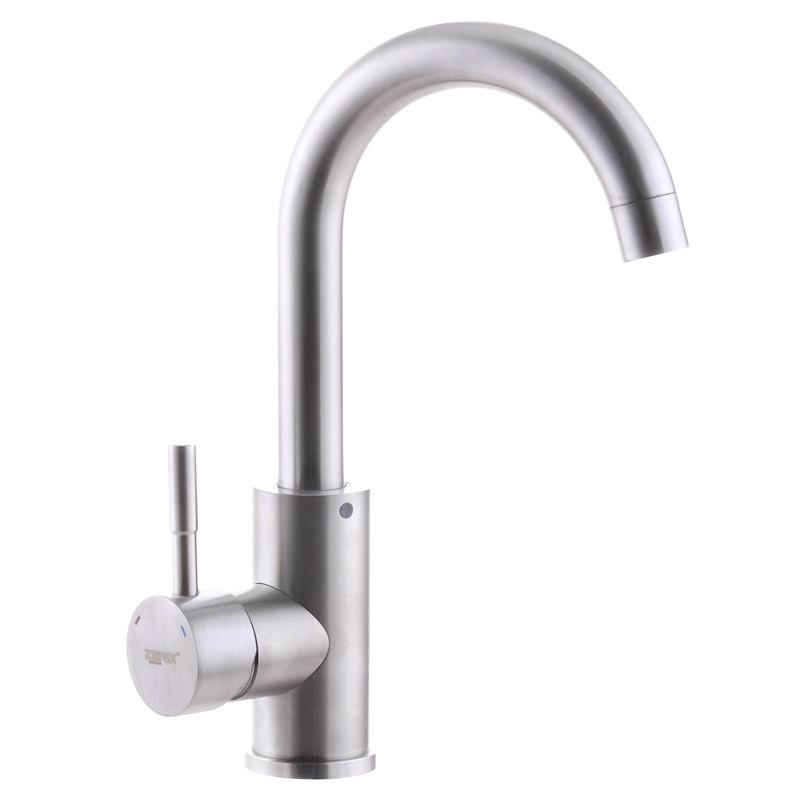 Одноручковий змішувач для умивальника з нерж. сталі SUS304 ZERIX SUS-001 (ZX3116) встановлюється на один отвір. Матеріал корпусу - нержавіюча сталь SUS 304 відрізняється низьким вмістом в складі вуглецю і відсутністю свинцю. Вона стійка до корозії і впливу хімічних речовин.