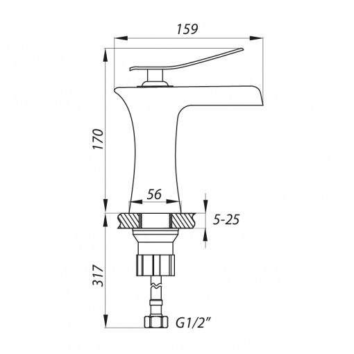 Одноручковий змішувач для умивальника ZERIX LR1055-23 з виливом "Водоспад" (LL1563) монтується гайкою на один отвір. Корпус виконаний з латуні, покритий хромом. Особливість моделі - литий вилив "Водоспад". Довжина виливу – 159 мм, висота змішувачі – 170 мм. Запірний елемент – керамічний картридж діаметром 40 мм. Підключається до трубопроводу двома гнучкими підводками, які йдуть у комплекті разом із кріпильним елементом та гумовими прокладками. Поставляється у фірмовій коробці Zerix.