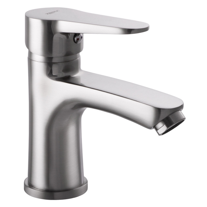 Одноручковий змішувач для умивальника ZERIX PUD1 146 (ZX2798) монтується гайкою на один отвір. Матеріал корпусу – стійкий до корозії силумін (сплав алюмінію з кремнієм). Колір покриття – нержавіюча сталь.