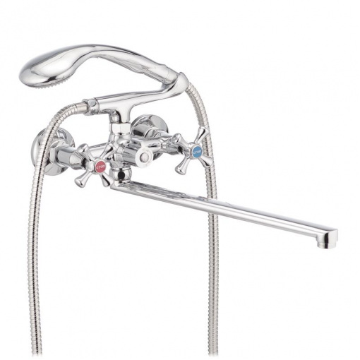 Змішувач для ванної з поворотним виливом Cron Smes 140 Euro має замінний запірний елемент - напівоборотну керамічну кран буксу розміром 1/2. Встановлюється на труби холодної та гарячої води, вмонтовані у стіну. В комплектацію входить шланг 150 см, режимна лійка, чашки, ексцентрики, гумові прокладки, тримач для лійки "Ріжок".