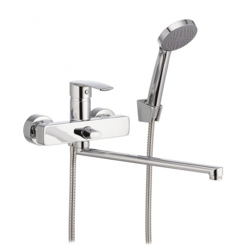 Змішувач для ванної з поворотним виливом Cron Vega 006 Euro має замінний запірний елемент - картридж з керамічними пластинами діаметром 35 мм. Встановлюється на труби холодної та гарячої води, вмонтовані у стіну. В комплектацію входить шланг 150 см, лійка, чашки, ексцентрики, гумові прокладки, настінний тримач для лійки. Матеріал корпусу - стійкий до корозії силумін (сплав алюмінію з кремнієм) ). Поверхня має приємний сталевий відтінок завдяки хромованому покриттю. Довжина виливу 350 мм. Поставляється у фірмовій коробці Сron. На корпус змішувача у ванну Cron Vega 006 Euro надається гарантія 2 роки, а на комплектуючі – 1 рік.