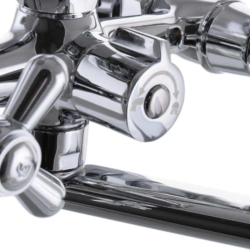 Змішувач для ванної з поворотним виливом EP DOMINOX 140 має замінний запірний елемент - кран буксу з гумовими прокладками розміром 1/2 дюйма. Встановлюється на труби холодної та гарячої води, вмонтовані у стіну. Закріплюється за допомогою ексцентриків, які йдуть в комплекті разом з гумовими прокладками, декоративними чашками, шлангом, лійкою та кронштейном. (сплаву цинку, міді та ін. металів), що володіє високою міцністю, зносостійкістю і є одним з кращих матеріалів для змішувачів. Поверхня корпусу хромована та відполірована до дзеркального блиску. Довжина виливу 320 мм. Поставляється у фірмовій коробці EUROPRODUCT. На корпус змішувача EP DOMINOX 140 надається гарантія 5 років, а на комплектуючі - 1 рік.