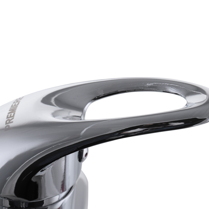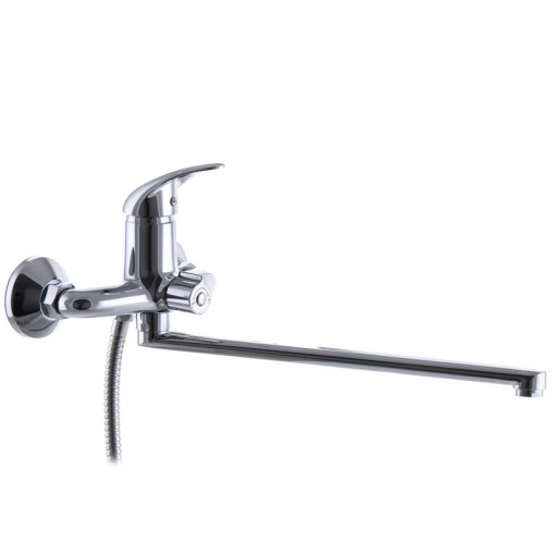 Змішувач для ванної з поворотним виливом EP PREMIERE 006 EURO має замінний запірний елемент - кран буксу з гумовими прокладками розміром 1/2 дюйма. Встановлюється на труби холодної та гарячої води, вмонтовані у стіну. Закріплюється за допомогою ексцентриків, які йдуть в комплекті разом з гумовими прокладками, декоративними чашками, шлангом, лійкою та кронштейном. має високу міцність, зносостійкість і є одним з кращих матеріалів для змішувачів. Поверхня корпусу хромована та відполірована до дзеркального блиску. Довжина виливу 320 мм. Поставляється у фірмовій коробці EUROPRODUCT. На корпус змішувача EP PREMIERE 006 EURO надається гарантія 5 років, а на комплектуючі - 1 рік.