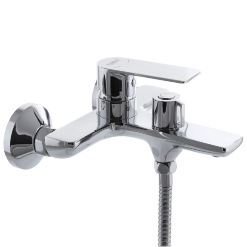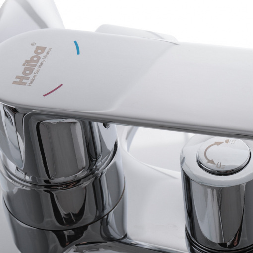 Литий змішувач для ванної HAIBA ALEX 009 має замінний запірний елемент - картридж з керамічними пластинами. Встановлюється на труби холодної та гарячої води, вмонтовані у стіну. Закріплюється за допомогою ексцентриків, які йдуть у комплекті разом з гумовими прокладками, декоративними чашками, шлангом, лійкою та кронштейном.
