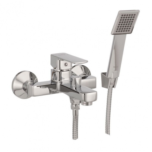 Литий змішувач для ванни Haiba Kubus 009 Euro має замінний запірний елемент - картридж з керамічними пластинами діаметром 35 мм. Встановлюється на труби холодної та гарячої води, вмонтовані у стіну. Закріплюється за допомогою ексцентриків, які йдуть у комплекті разом із гумовими прокладками, декоративними чашками, шлангом, лійкою та кронштейном.
