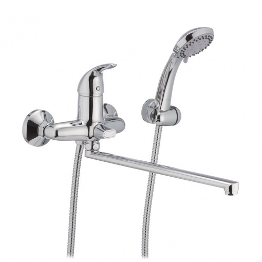 Змішувач для ванної з поворотним виливом Haiba Violet 006 Euro має замінний запірний елемент - картридж з керамічними пластинами діаметром 40 мм. Встановлюється на труби холодної та гарячої води, вмонтовані у стіну. Закріплюється за допомогою ексцентриків, які йдуть у комплекті разом із гумовими прокладками, декоративними чашками, шлангом, лійкою та кронштейном.