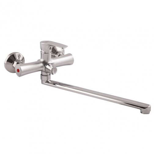 Змішувач для ванної з поворотним виливом ZERIX FAB-7 має замінний запірний елемент - картридж з керамічними пластинами. Встановлюється на труби холодної та гарячої води, вмонтовані у стіну. Закріплюється за допомогою ексцентриків, які йдуть у комплекті разом з гумовими прокладками, декоративними чашками, шлангом, лійкою та кронштейном.