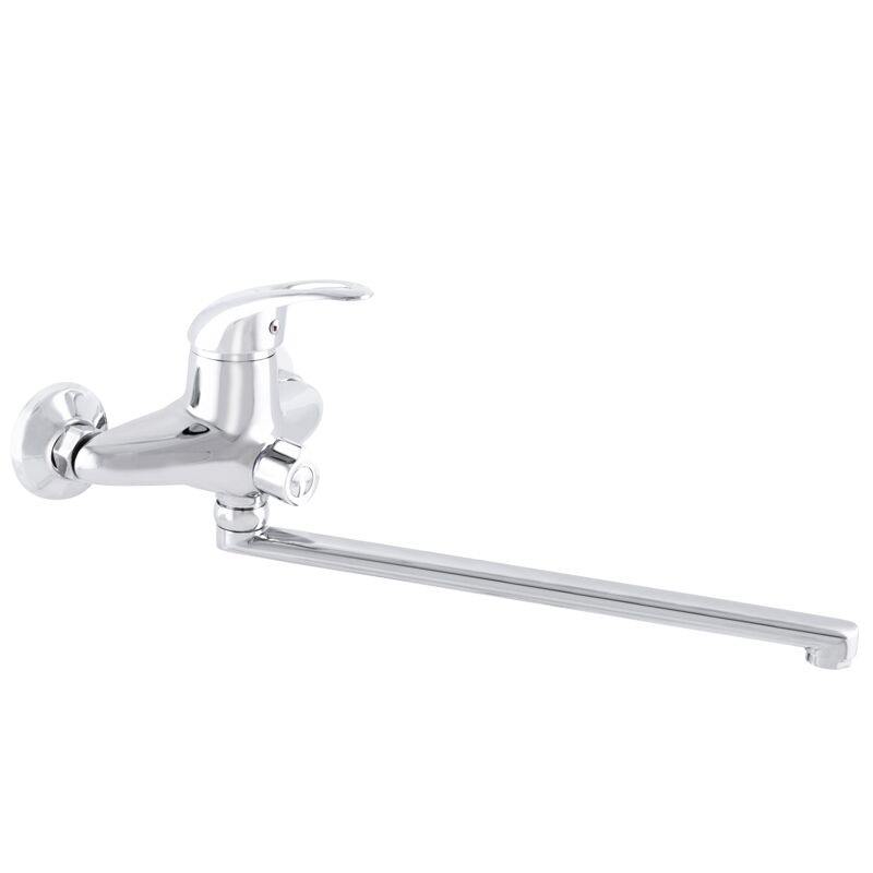 Змішувач для ванної з поворотним виливом ZERIX NHK 048 має замінний запірний елемент - картридж з керамічними пластинами діаметром 40 мм. Встановлюється на труби холодної та гарячої води, вмонтовані у стіну. Закріплюється за допомогою ексцентриків, які йдуть у комплекті разом з гумовими прокладками, декоративними чашками, шлангом, лійкою та кронштейном.
