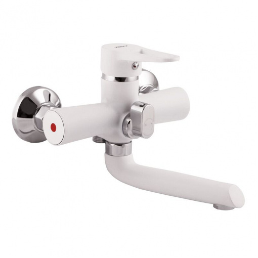 Змішувач для ванної з поворотним виливом ZERIX PUD3 045 WHITE має замінний запірний елемент - картридж з керамічними пластинами діаметром 35 мм. Встановлюється на труби холодної та гарячої води, вмонтовані у стіну. Закріплюється за допомогою ексцентриків, які йдуть у комплекті разом з гумовими прокладками, декоративними чашками, шлангом, лійкою та кронштейном.
