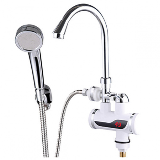 Проточний водонагрівач ZERIX ELW08-EP з індикатором температури та ПЗВ (ZX2750). Електричний проточний водонагрівач на кран має низку переваг: зменшення витрати води, майже миттєве нагрівання, простий монтаж, невеликі витрати електроенергії. Проточний водонагрівач з душем працює від мережі і рекомендований до покупки, якщо у вас відбуваються систематичні перебої з гарячою водою. Водонагрівач ZERIX надзвичайно зручний у використанні завдяки своїм компактним розмірам. Кран із підігрівом води встановлюється у ванній кімнаті або там де є необхідність у теплій воді. Вилив крана водонагрівачаповертається на 360 градусів і оснащений індикатором температури, за рахунок цього Ви можете контролювати температуру нагрівання води. Так само кран оснащений захистом ПВНЗ, яке відключить споживача від мережі живлення, якщо відбудеться витік струму.