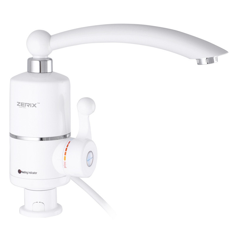 Проточний водонагрівач ZERIX ELW16 з індикатором температури (ZX3071). Електричний проточний водонагрівач на кран Зерікс має низку переваг: зменшення витрати води, майже миттєве нагрівання, простий монтаж, невеликі витрати електроенергії. Проточний водонагрівачпрацює від мережі і рекомендований до покупки, якщо у вас відбуваються систематичні перебої з гарячою водою.