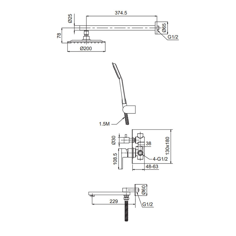 Детальні характеристики Вбудована душова система Koer KI-66015-02 (з нерж. сталі) (Колір нерж) (KR4785).