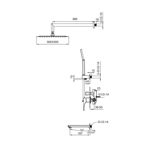 Форма лійки верхнього душу квадратна